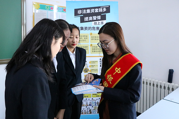 为揭露非法集资给社会和人民群众造成的危害,引导高校师生增强法律意识、风险意识和识别能力,有效遏制非法集资犯罪活动,11月10日,由盘锦市金融发展局和中国人民银行盘锦市中心支行主办,盘锦职业技术学院、中国银行盘锦分行、中银国际证券盘锦营业部承办的防范非法集资、校园贷和反洗钱宣传进高校活动,在学院博园楼316教室进行。