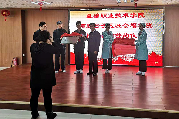 在热烈的气氛中,学院副院长张洪福与双台子区社会福利院党支部书记于素玲签署了合作意向书。最后,双台子区政府副区长翟月雷和盘锦职业技术学院副院长张洪福共同揭牌,签约仪式圆满成功。
