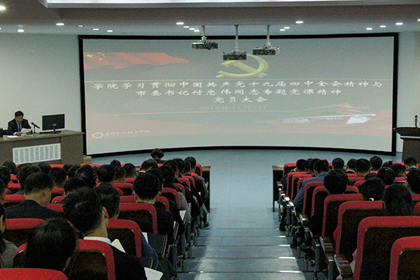 11月5日13:30,学院召开学习宣传贯彻中国共产党十九届四中全会精神和市委书记付忠伟“不忘初心、牢记使命”主题教育专题党课精神大会,学院党委书记王正东专题传达四中全会精神和付忠伟书记专题党课精神,并就如何学习宣传贯彻做出了具体部署。学院全体党员同志及部分民主党派参加了本次会议,会议由学院党委副书记李兵同志主持。