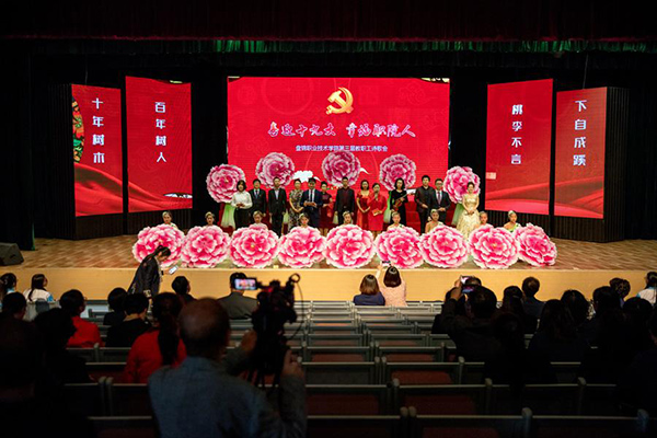 10月13日下午盘锦职业技术学院工会在学院文化中心举办了“喜迎十九大 幸福职院人”暨第三届教职工诗歌朗诵会活动,学院领导班子成员,全体教职工以及600余名学生代表共同观看了本次演出。