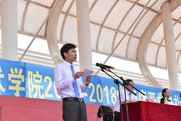 最后,张洪福副院长代表学院讲话,表达了学院对 2017 级新生的期许与祝福,希望新生们志存高远、乐观笃学、遵规守纪、心胸坦荡、锤炼意志,并希望新生们珍惜这宝贵的学习机会,严于律己、诚信做人、不负重望、早日成材。