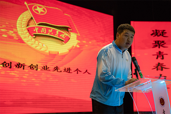会上,“创新创业先进个人”获得者机电工程系陶宇樊同学代表受表彰同学发表了“奋斗的青春最美丽”的演讲,以他的亲身经历分享了创业故事。