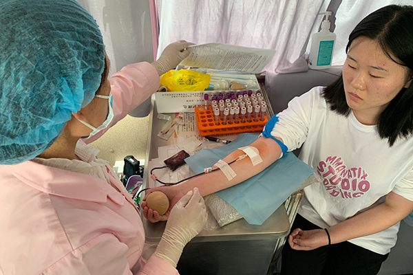 献血现场,参与献血的学生在医护人员和志愿者的引导下,按照疫情防控期间团体献血的有关要求,做好各项防护措施,有序地进行登记、体检、测量血压、测血型等程序,并认真听取医护人员讲解献血前后的注意事项,献血活动有序进行。
