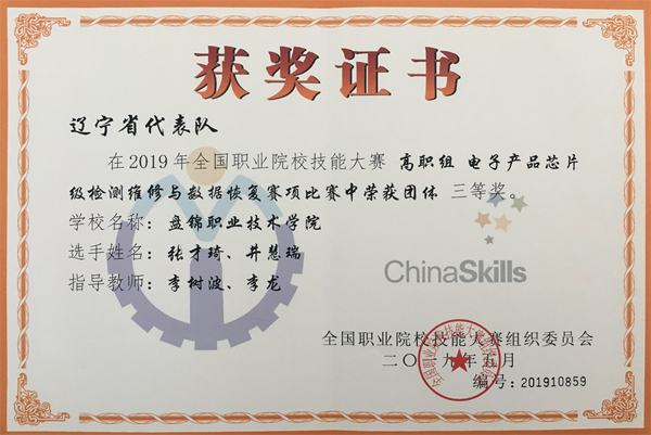2019年全国职业院校技能大赛电子产品芯片级检测维修与数据恢复赛项于5月11日在宁夏银川开赛,来自全国28个省、直辖市的90个高职院校180名参赛选手参加了比赛。经过一天的激烈角逐,由学院机电工程系王辉主任、孙伟副主任带队,李树波、李龙两位老师指导,张才琦、井慧瑞2名同学组成的代表队荣获该赛项团体三等奖,为辽宁省和学院争得了荣誉,继物联网技术应用赛项后再添佳绩。