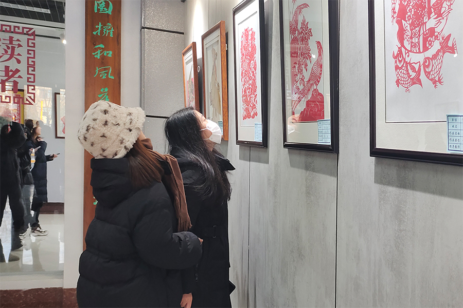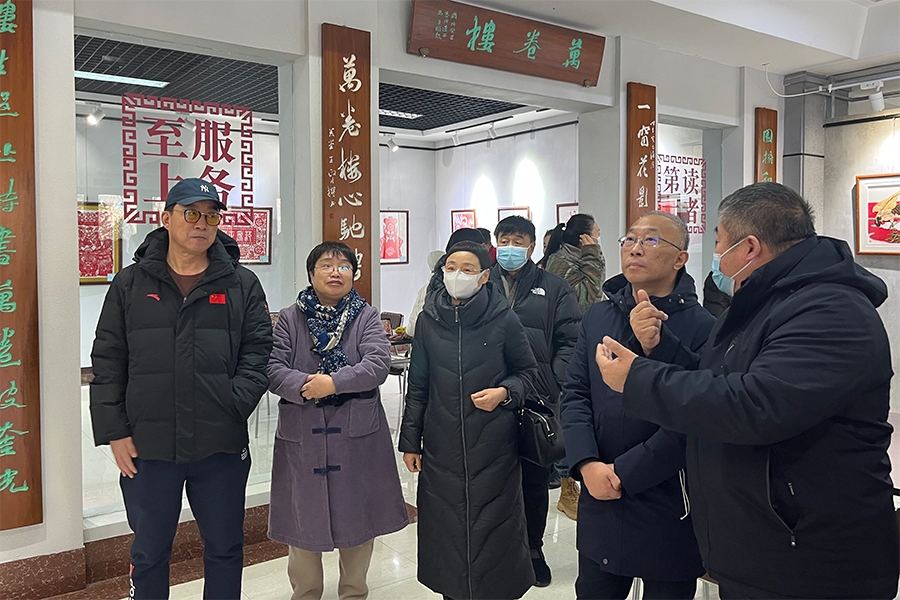 2023年12月19日,主题为“匠心技能成才 非遗传承有我”的获奖作品展在盘锦市图书馆盛大开幕,吸引了许多文化界、教育界的领导和嘉宾莅临参观。参加此次展览活动的领导有盘锦市文学艺术界联合会副主席曲子清、盘锦市文化旅游和广播电视局副局长陈建军,盘锦职业技术学院副校长李辉,盘锦市文化体育旅游发展促进中心副主任、盘锦市民间文艺家协会副主席张明,盘锦市图书馆馆长姜洁。莅临现场的还有芦苇画非遗传承人周航、剪纸非遗传承人施德祥以及四所学校的领导、老师和同学们共同观展。