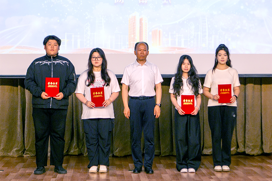 在5月30日的颁奖典礼上,学校领导为获奖选手颁发荣誉证书,并向他们表示热烈的祝贺。