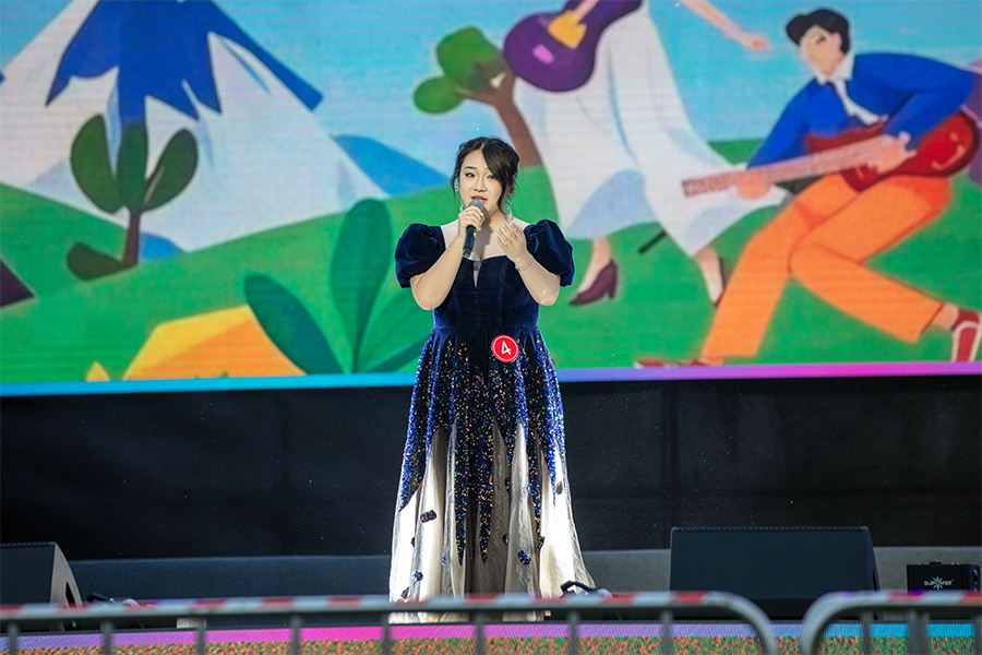 总决赛现场灯光璀璨,选手们个个精神饱满,状态极佳,他们用动人的歌声诠释青春的活力与梦想,展现出极高的演唱水平。来自医疗护理学院的张佳祎同学演唱了《乌兰巴托的夜》,她的歌声极具魅力,使观众沉浸其中,更是将现场活动气氛推向高潮。