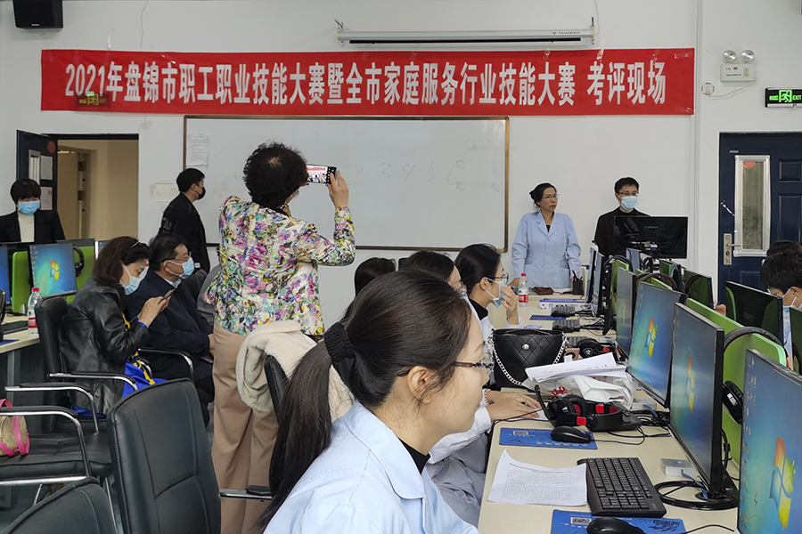 由盘锦市总工会、盘锦市人力资源和社会保障局、共青团盘锦市委员会、盘锦市妇女联合会、辽河油田公司工会联合主办,盘锦市家庭服务业学会承办,盘锦职业技术学院、盘锦珈瑞文化产业有限公司协办的盘锦市职工职业技能大赛暨全市家庭服务行业技能大赛初赛和复赛于2021年10月至11月在我校举行。在学校党委、工会的领导下,在医疗护理学院领导和老师的大力支持下,圆满地完成了此次比赛的工作任务。市总工会副主席裴志强、盘锦家政协会会长辛冰莅临我校指导相关工作。