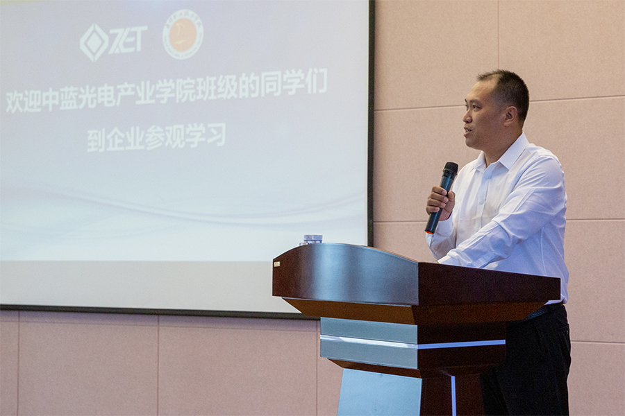 辽宁中蓝电子科技有限公司人力资源中心唐继柳经理对机电工程学院领导、老师和同学们的到来表示热烈的欢迎,对学校给予企业的支持表示衷心的感谢,他指出,企业与学校有着多年的合作历史,对学校毕业生的综合素质给予充分肯定,并强调双元制班的成立将进一步深化校企合作,为公司的可持续发展提供良好的人力资源支持。