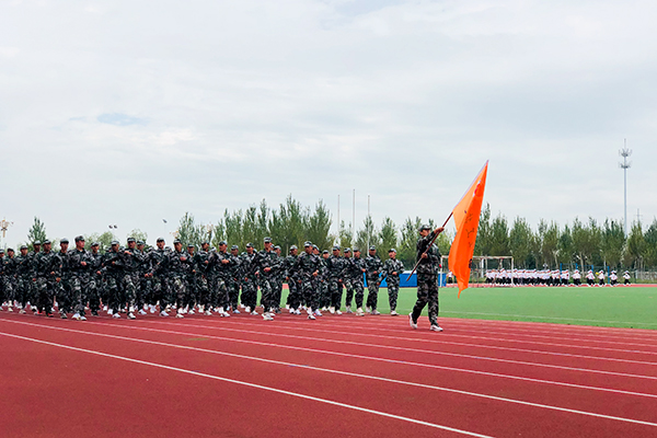九月的盘锦,气候宜人,9月12日上午10:00,学院2019级新生军训成果汇报表演大会在学院操场举行。学院党委副书记、武装工作部部长李兵,学生工作处、武装工作部副部长邓红伟,武警机...