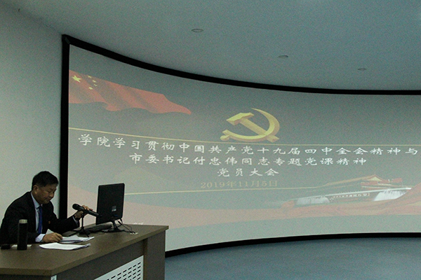学院召开全体党员大会学习宣传贯彻十九届四中全会精神和市委书记“不忘初心、...